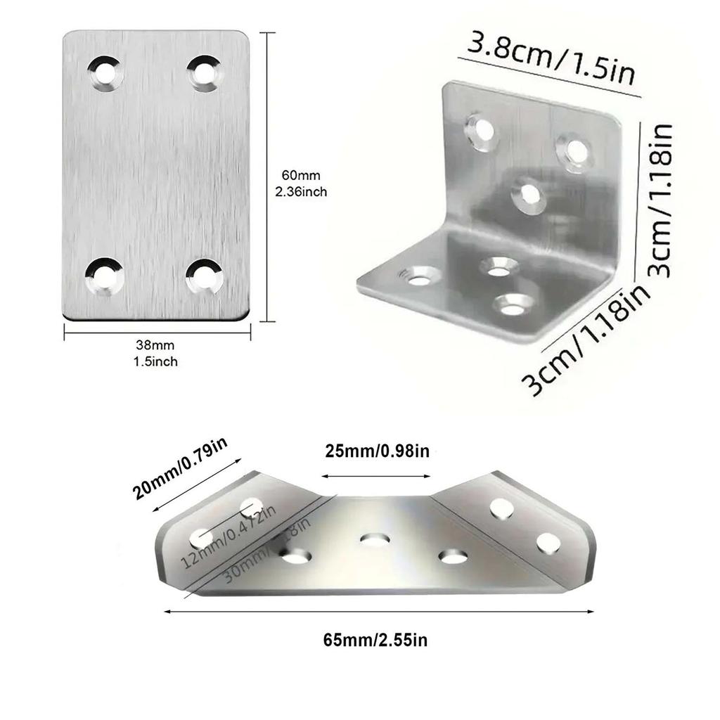 Three Types of Stainless Steel Corner Brackets for Quick Connection and Reinforcement of Furniture, 10 Pieces of Corner Brackets