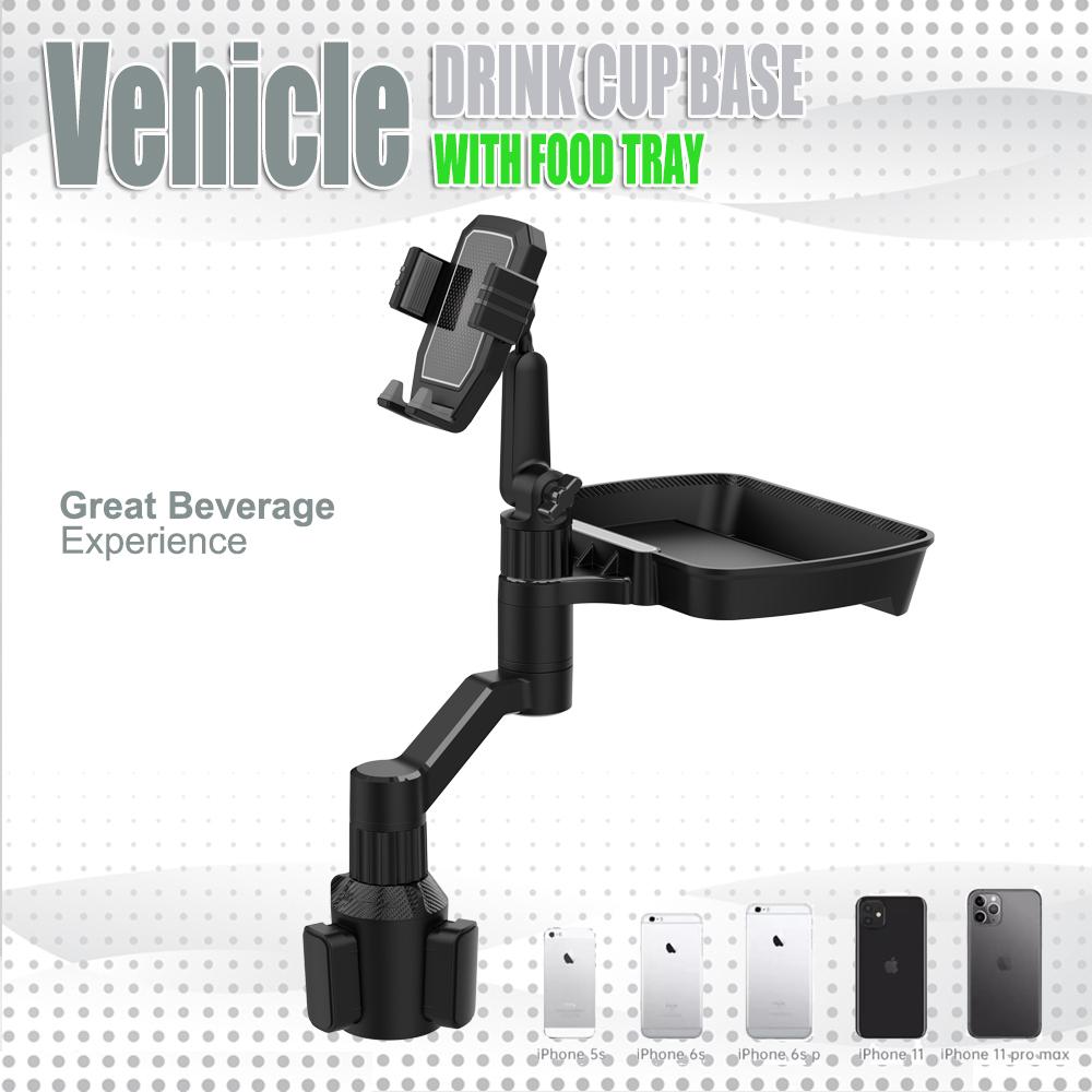 Universal Car Food Tray with Phone Holder & Cup Base, 360° Rotating Adjustable Car Organizer for Snacks Drinks 6.5-10.5cm Phones