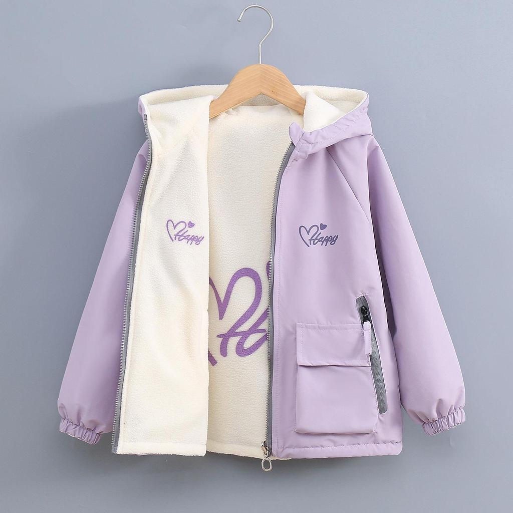This versatile girls' jacket is perfect for the transitional seasons of spring and autumn. Crafted from a soft cotton material, it offers comfort and warmth while ensuring breathability. The double-sided fleece design provides additional coziness and allows for two different looks in one garment. Featuring a loose fit, it is ideal for layering over other clothing and offers freedom of movement. Suitable for various outdoor activities, this stylish windbreaker combines practicality with a fashionable touch, making it a must-have addition to any child's wardrobe.