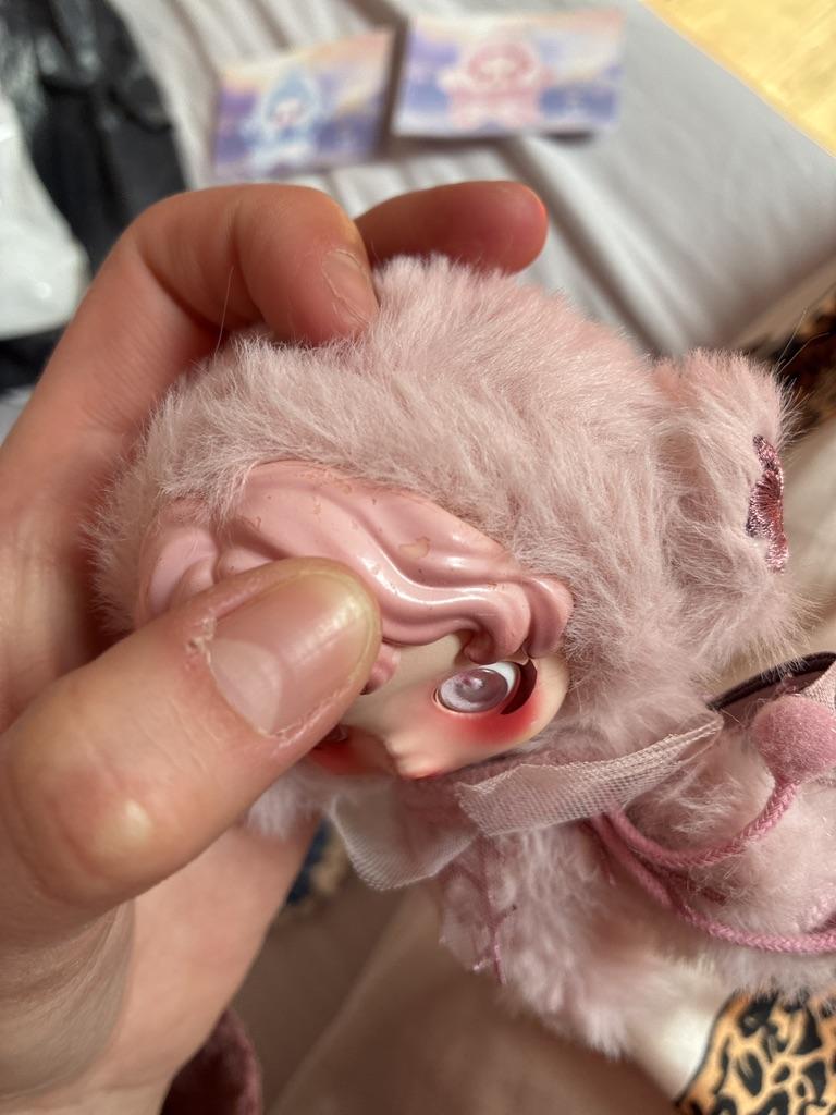 This is a ripoff! The keychains are fake. The blue one looks nothing like the picture and doesn’t have the clothes on it which it has originally. It’s just a blue scrunchie put around. The pink one looks a little more like the picture but still a fake and damaged as well.