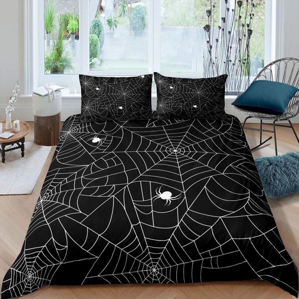 Horror Spider Web Pattern Three-Piece Digital Printed Bedding Halloween Themed Bed Cover
