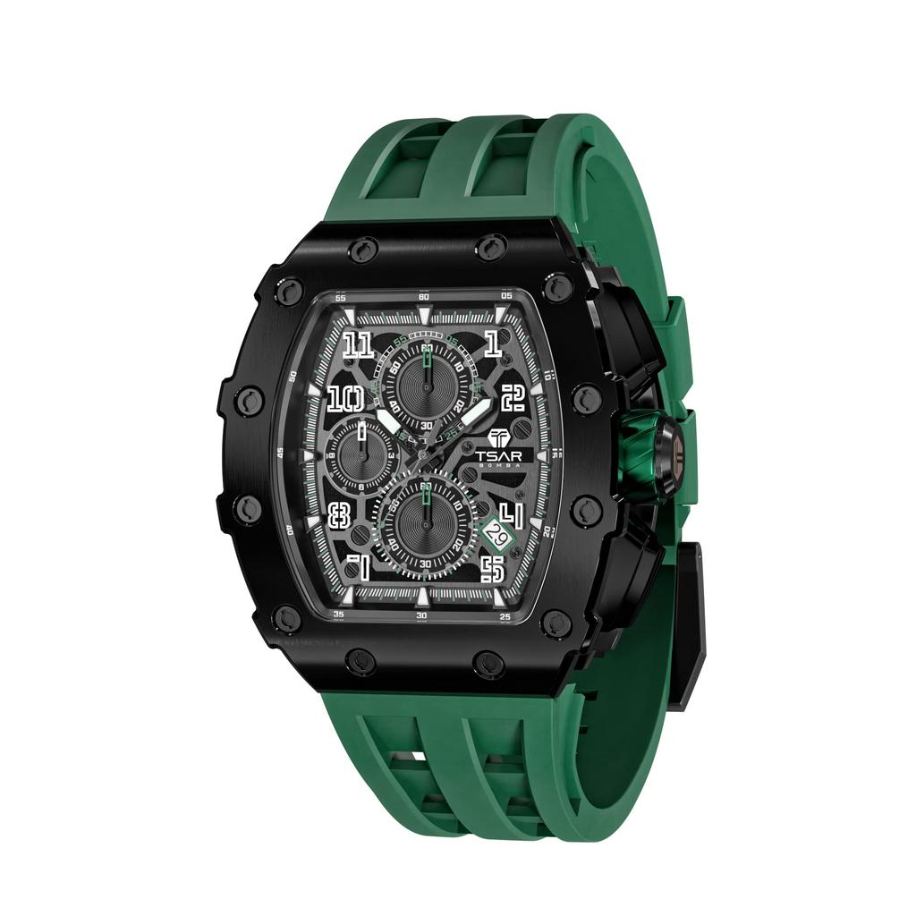TSAR BOMBA Quartz Analog 5 ATM Water Tonneau Stainless Steel Simple Large Casual Sport Day Green 06 Men's Watch, Movement, Resistance, Shape, Case,
