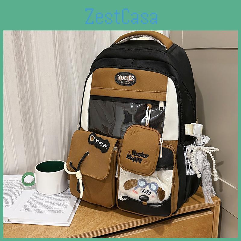 Blocked Sweet Color Letter Patter Student Backpack With Compartment Transparent