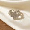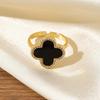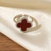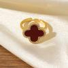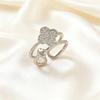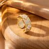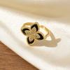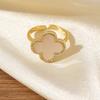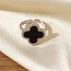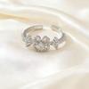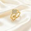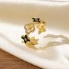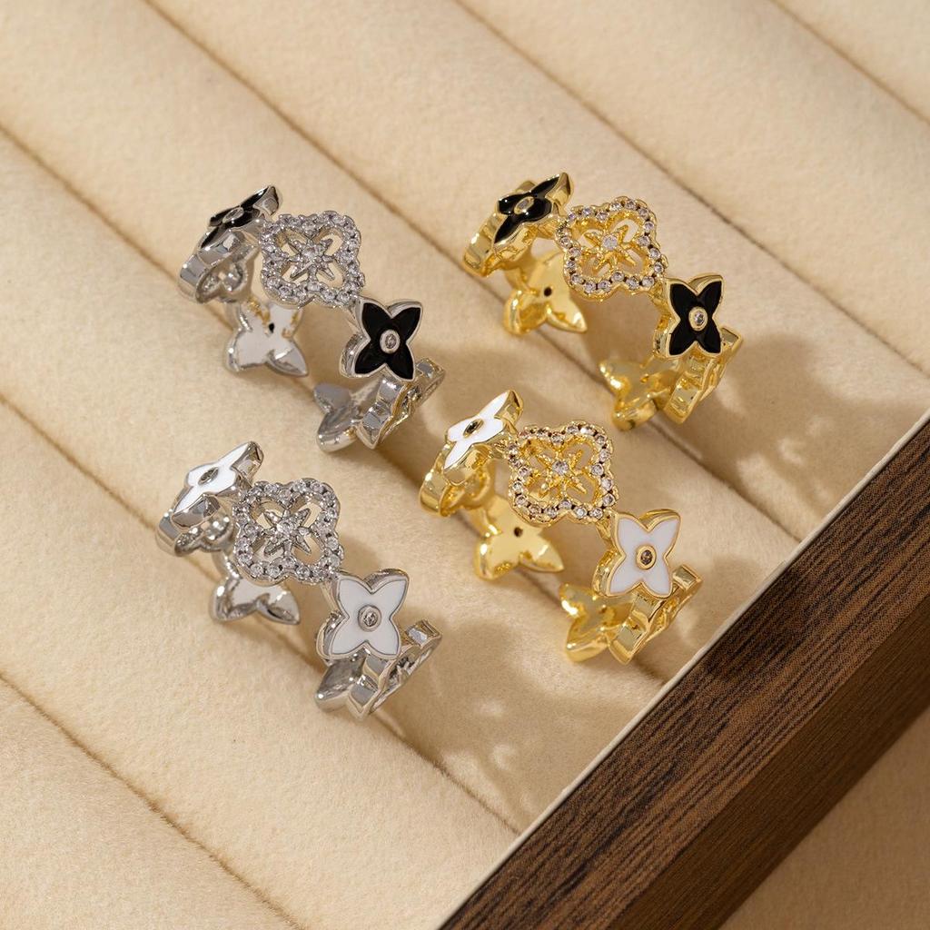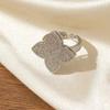 Hollow Rhombus Two-Tone Diamond-Studded Four-Leaf Clover Zirconia Ring for Women