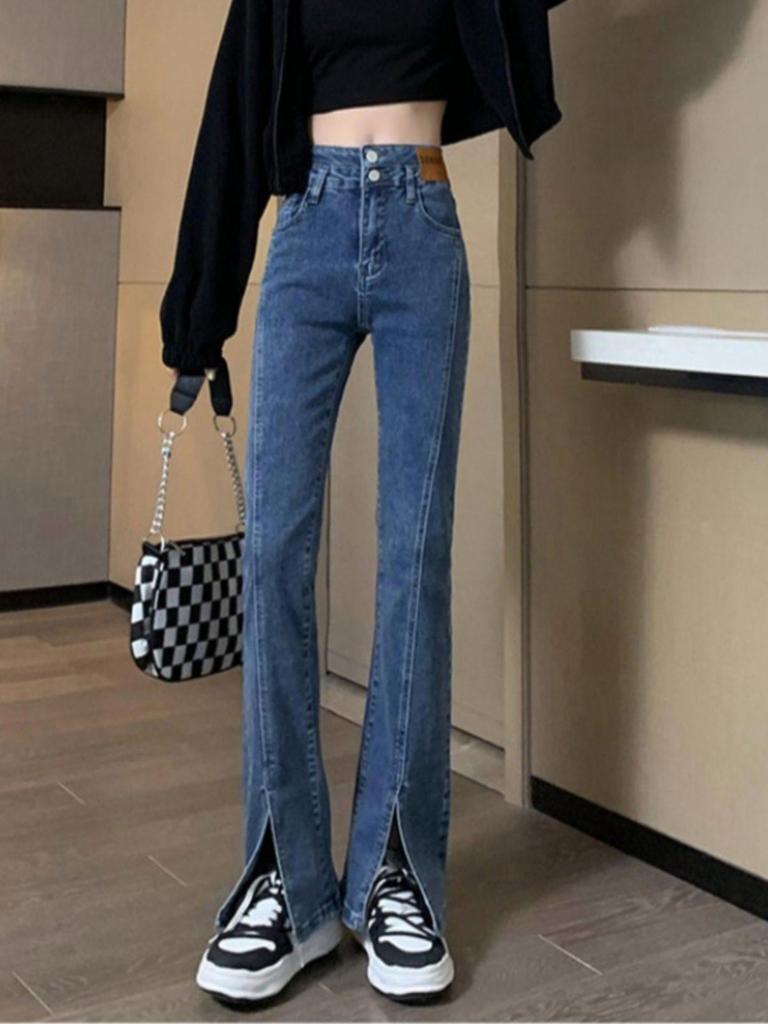These Women's High Waist Black Flare Jeans from the Spring/Autumn 2025 Collection offer a chic and contemporary style. Made from premium cotton stretch denim, these jeans provide both comfort and durability. The high waistline accentuates the silhouette, while the floor-length flare design adds a touch of elegance. The jeans feature a subtle pattern decoration, adding a unique twist to the classic design. Available in a small size option, these jeans are perfect for those seeking a slimming fit with timeless appeal.