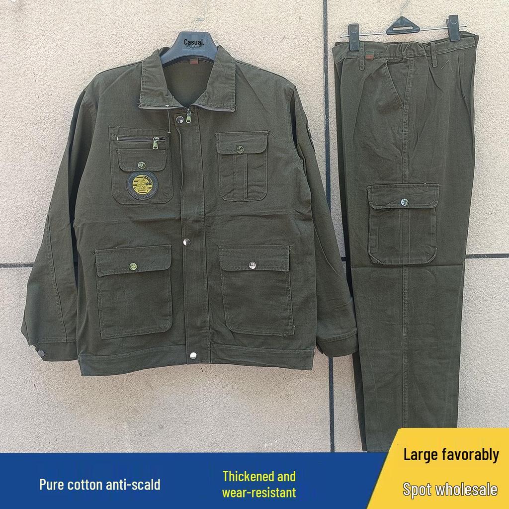 Men's and Women's Durable Army Green Cotton Workwear Set for Spring and Autumn