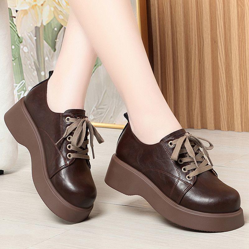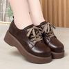 Women's Fashion Leather Loafers: Non-slip, Thick Sole, Lace-up, Casual, Versatile Shoes for Spring and Autumn.