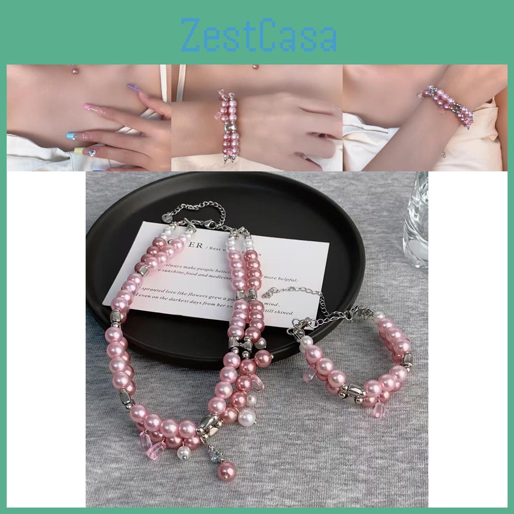 Trendy Double Pink Layer Bead Bracelet For Women Stylish Jewelry For 2024 Summer