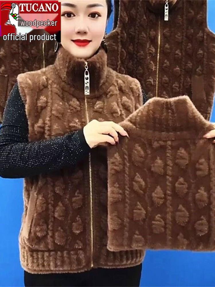 Woodpecker Women's Faux Mink Velvet Zip-Up Vest: Thick, Warm Sweater Vest for Mom - Autumn/Winter Collection