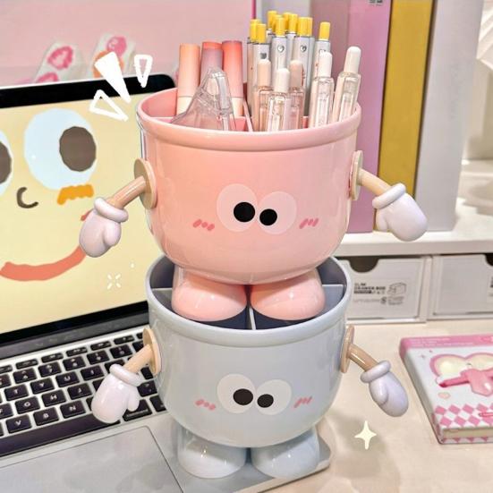 Pen Holder Cartoon Design Macaron Color Desk Organizer Large-capacity Partitioned Desk Caddy Home Office School Decor