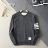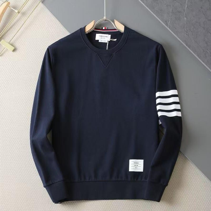 Embrace comfort and style with this unisex crew neck sweatshirt designed for the autumn and winter seasons. Crafted entirely from premium cotton, this pullover offers a lightweight yet cozy experience, perfect for layering or wearing on its own. Featuring a modern slim fit, it elegantly contours to your shape while the long sleeves provide warmth and versatility. The minimalist, solid pattern is complemented by a chic four-stripe detail, adding a touch of flair to its classic design. Ideal for casual outings or relaxed days at home, this sweatshirt is a wardrobe staple for both men and women.
