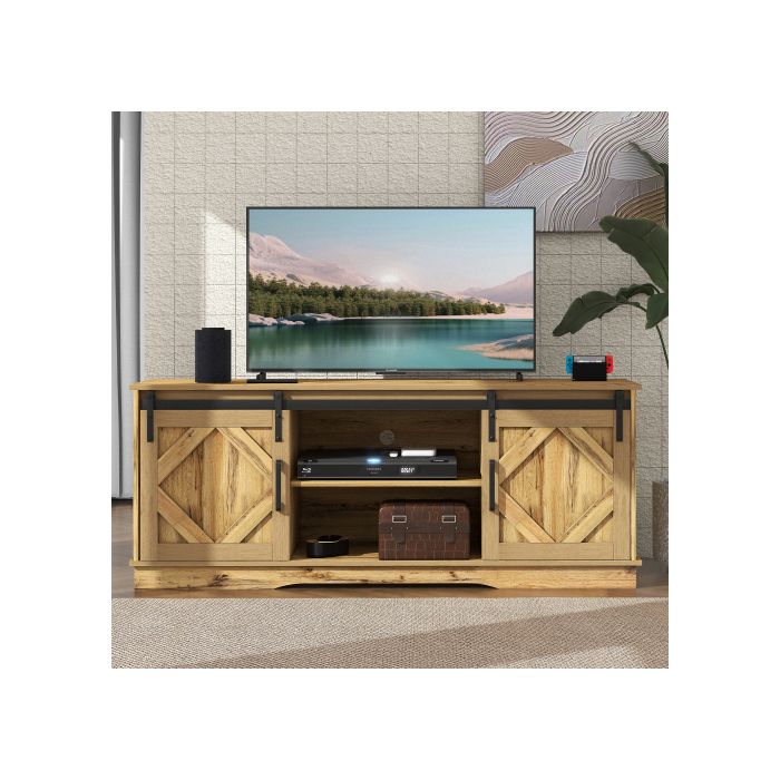 Buffet TV - MUVOE - Vintage Brown - 2 Portes Coulissantes - Étagères Réglables - 150x40x60cm