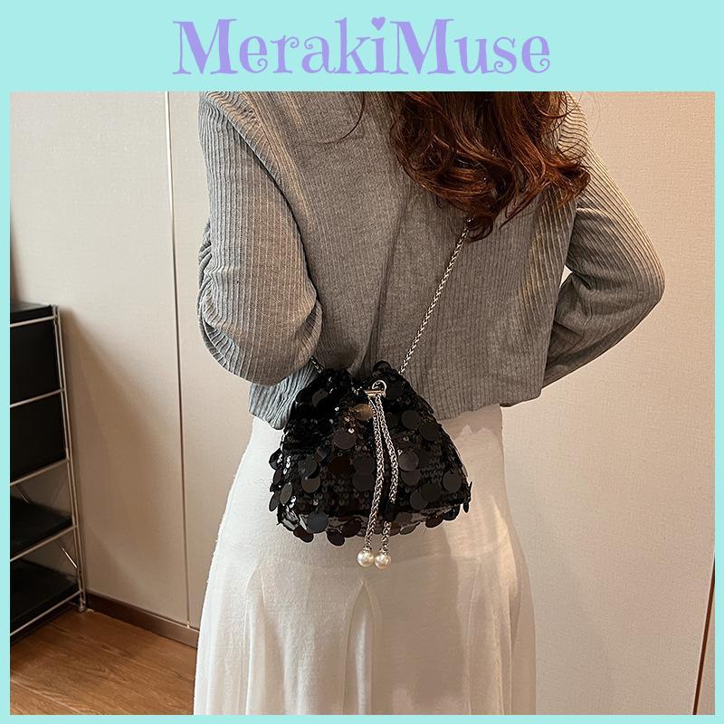 Crossbody Chain Sequin Bag Pu Material Bucket Bag For Girl Casual Use Day