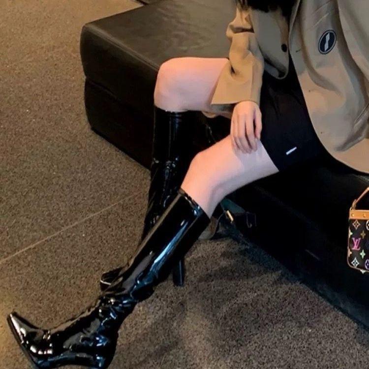 Kendall's Versatile Patent Leather Ankle Boots - Women's Chunky High Heels, 2025 New European/American Mid-Calf Martin Boots for Autumn/Winter