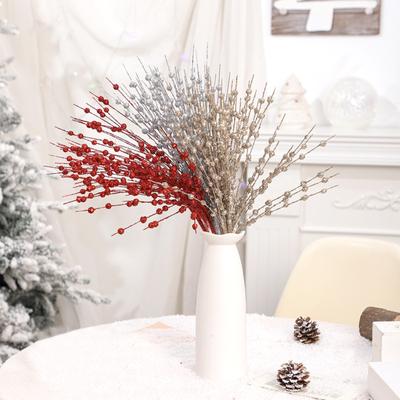 Christmas Tree Stems Artificial Glitter Berry Stem 15.75in Fake Glitter Berry Stem Ornaments Home Decor For Christmas Tree