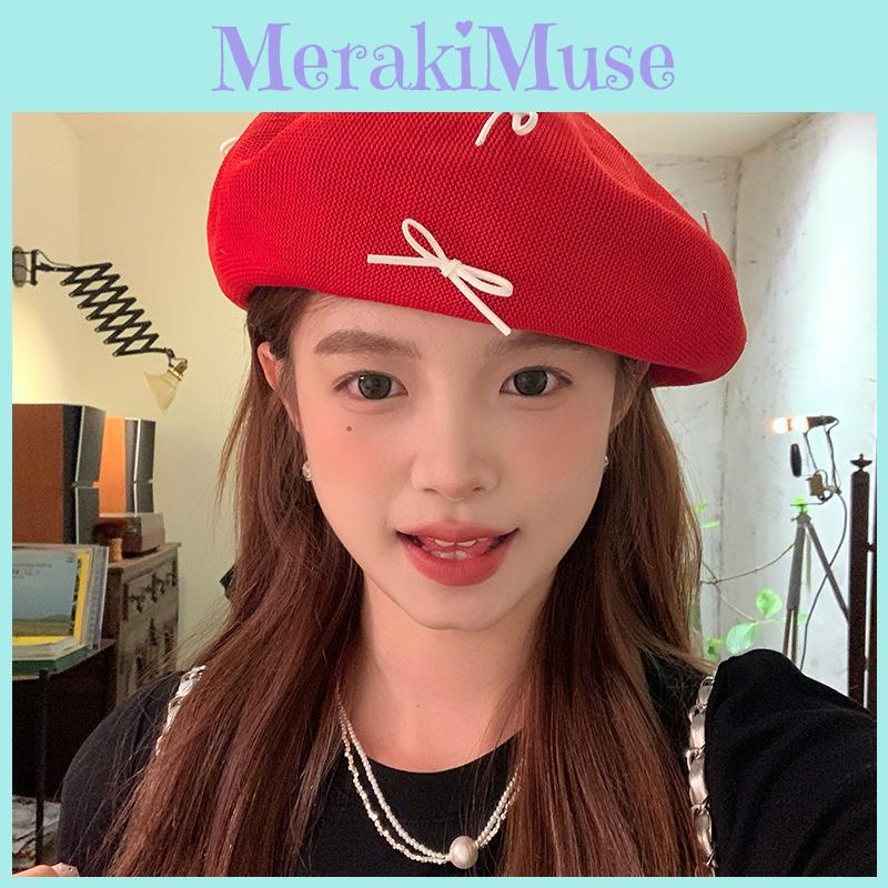 Red Bow Beret Painter Hat Uv Protection Breathable Female Lightweight Style