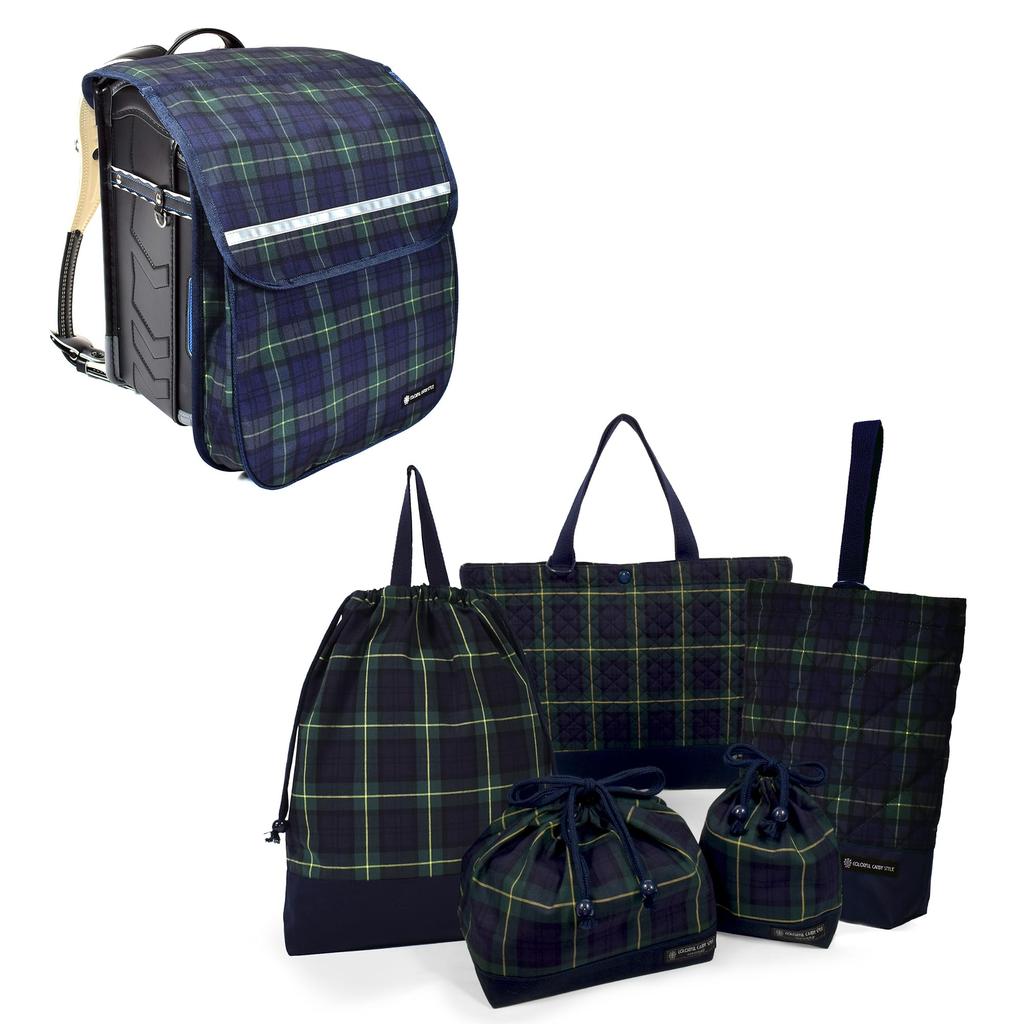 COLORFUL CANDY STYLE Entrance Lesson Shoe Drawstring Gym Clothes Lunch Cup Small Item and Backpack Cover with Stylish Tartan Check and Dark Green