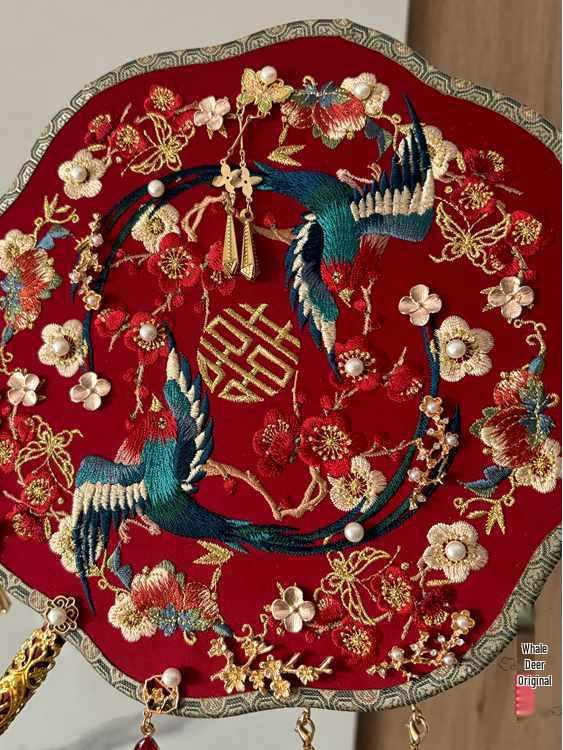 Whale Deer Double-Sided Round Fan - Original Magpie & Laughing Dove Design for Bride Wedding Gift