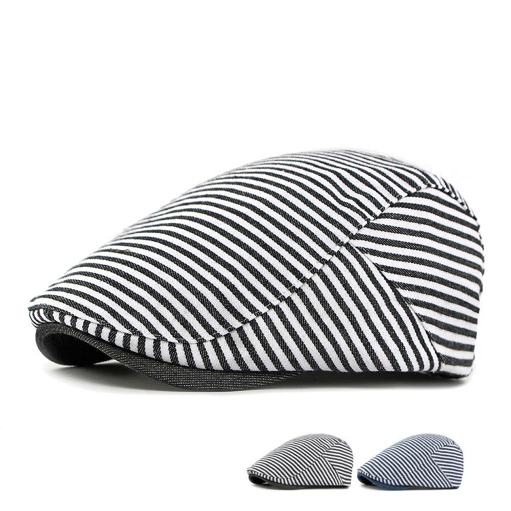 Navy Striped Cap Men Women Retro Beret British Cap Forward Cap