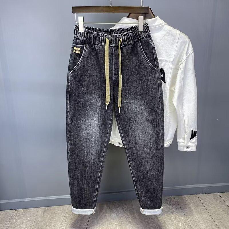 Men's Elastic Waist Autumn Straight Versatile Cycling Men's Pants Drawstring Denim Cowboy Casual Trousers