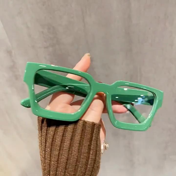 Thick-rimmed Women's Fashionable Square-frame Eyeglasses, Decorative Non-prescription Glasses, European and American Style Anti-blue Light Glasses.