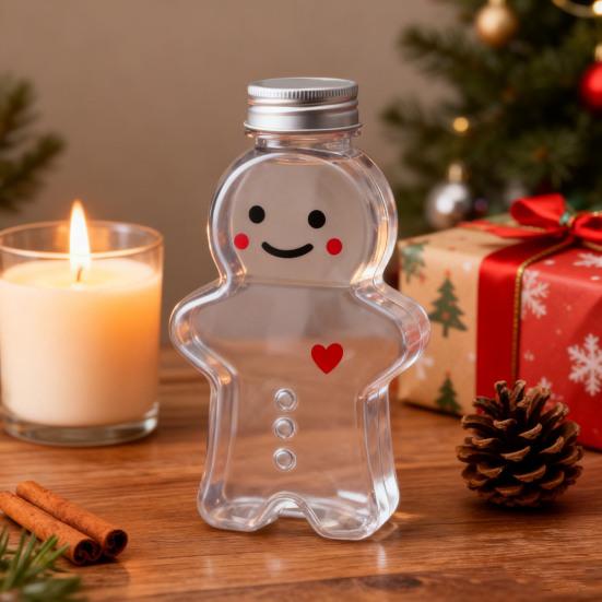 Festive Atmosphere Enhancement: Elevate the holiday spirit with our classic gingerbread man-shaped bottle adorned with a Christmas hat and scarf. The transparent design adds a cute and festive touch to any occasion, making it perfect for creating a special Christmas ambiance. Embrace the joy of the season with these eye-catching bottles.