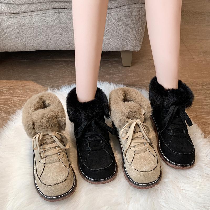 Snow Boots Women Shoes Warm Plush Fur Ankle Boots Winter Female Lace Up Flat Casual Shoes Women Sneakers