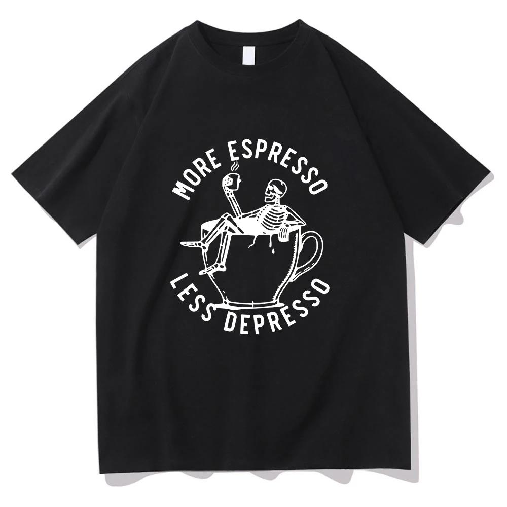 Summer Men's More Espresso Less Depresso Skeleton Drinking Coffee Pattern Print Horror Style 100% Cotton Short-sleeved T-shirt