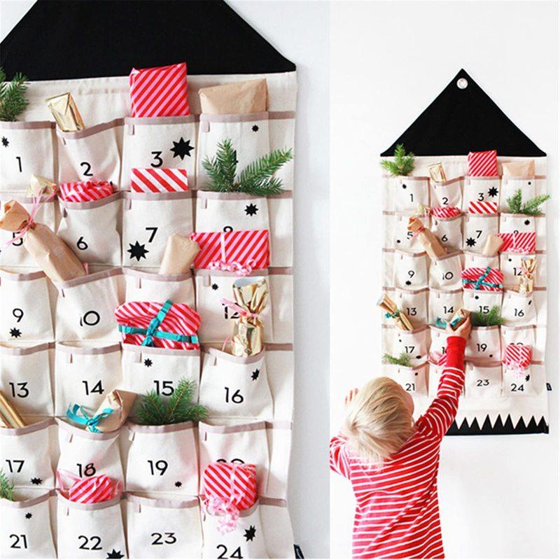 Wall Hanging Decor Xmas 2025 Christmas Advent Calendar With 24 Pockets Reusable Countdown Calendar Home Christmas DIY Decoration