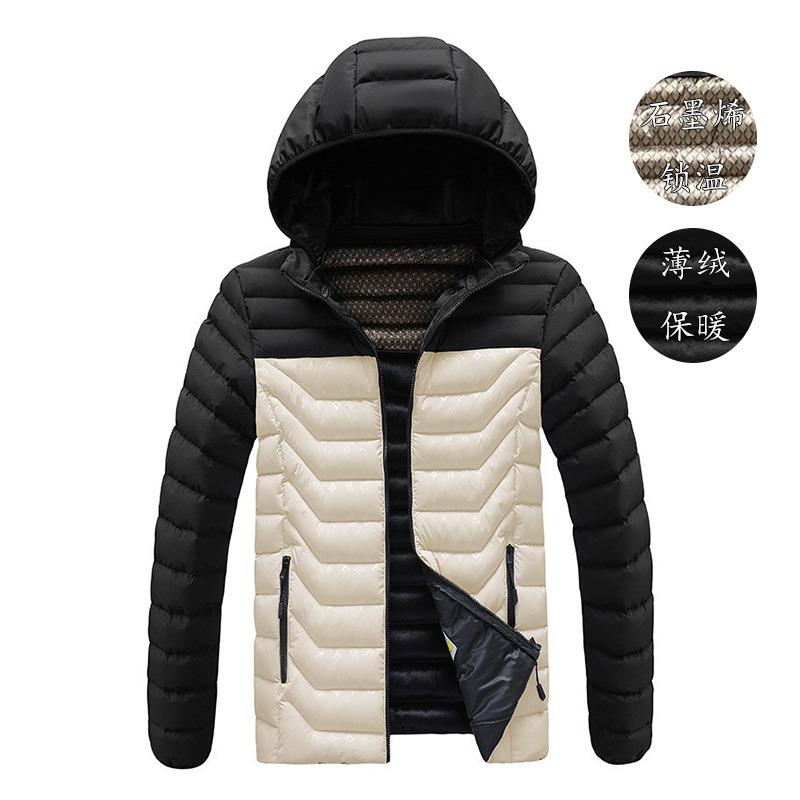 Cotton-padded Men's Winter Contrasting Color Graphene Slim-fit Removable Cap Thickened Hooded Jacket Men's