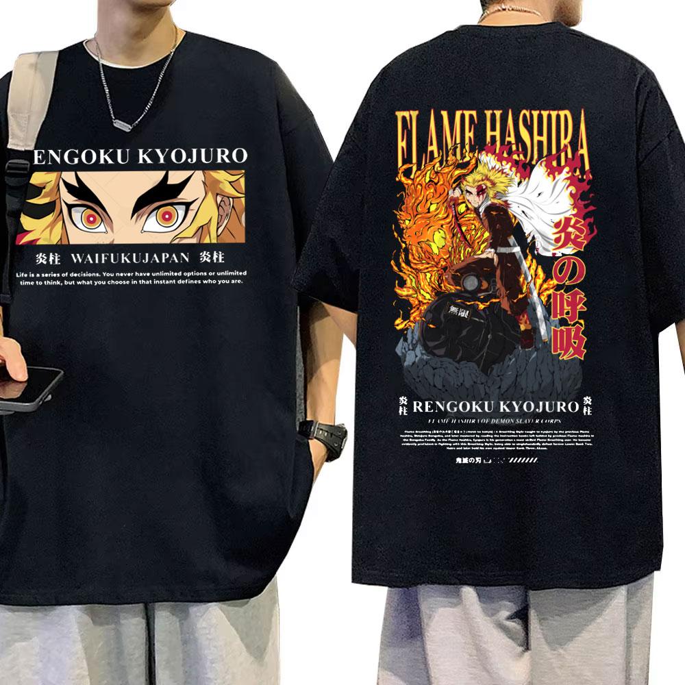 Anime Demon Slayer T-shirt Rengoku Kyoujurou Eyes Graphic T Shirts Unisex Unisex Fashion Casual Tshirt Male Soft Cotton Short Sleeve