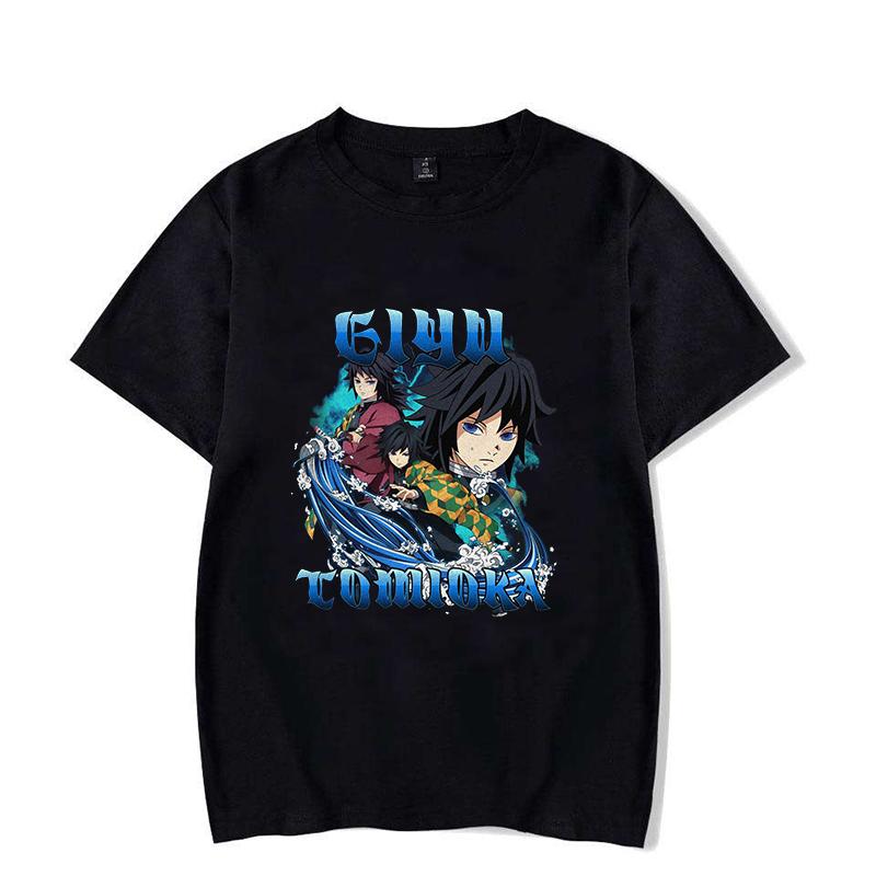 Tomioka Giyuu Anime New Men's Summer Short-sleeved T-shirt Harajuku 100% Cotton Casual T-shirt Fun Short-sleeved