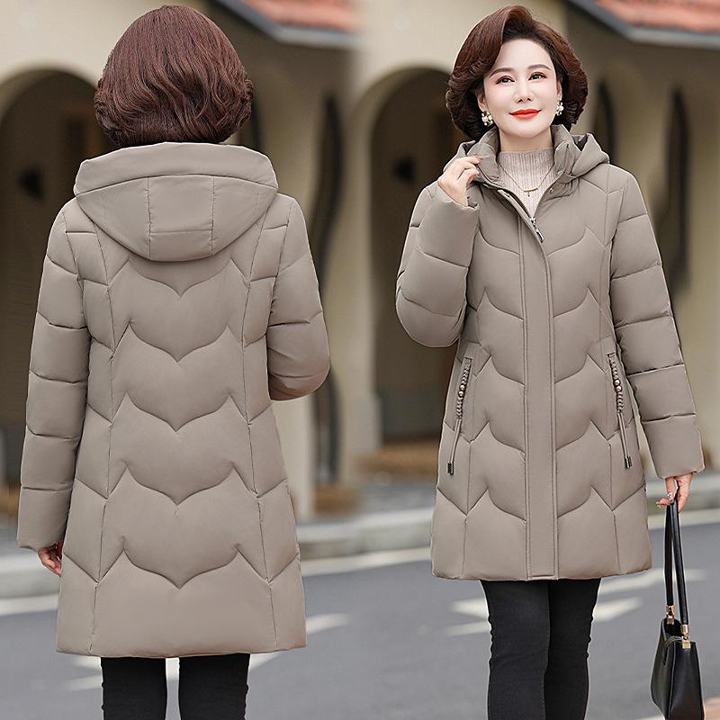 Mid-length Cotton Jacket Women's Winter Middle-aged Mother Simple Loose Thick Warm Fashion Simple Slim-fit Jacket