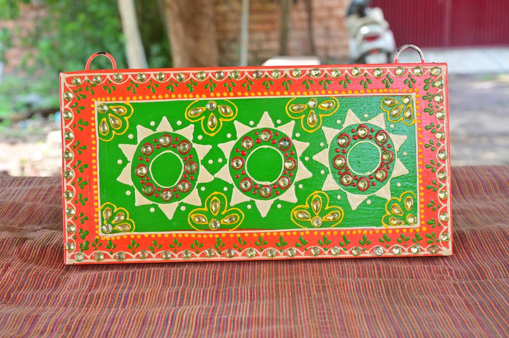 Indian Folk Art Mirror Work Wood Wall Panel