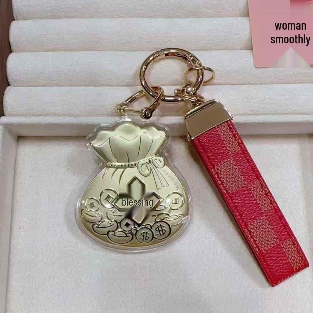 Gold Ingot Lucky Bag Keychain: 999 Pure Gold Pendant, Wealth & Fortune Charm Gift
