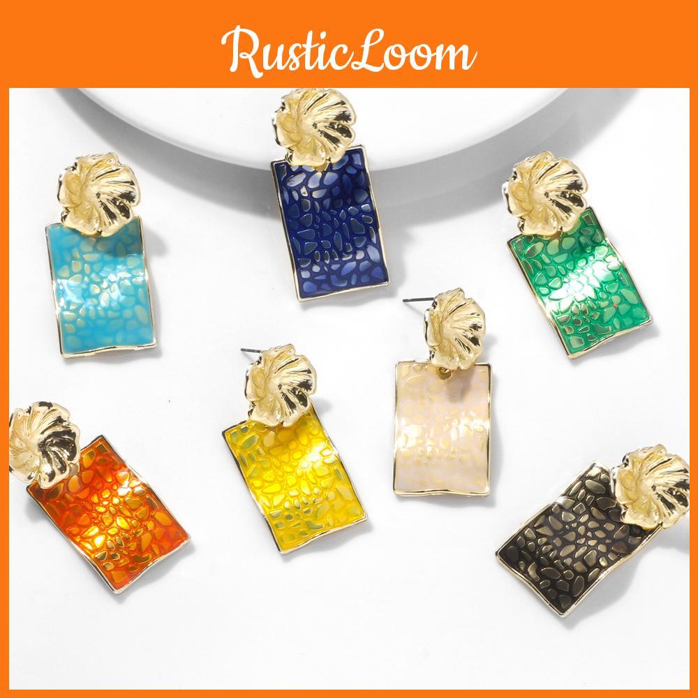Elegant Design: These alloy floral earrings feature a sophisticated rectangle shape with intricate flower details, perfect for adding a touch of elegance to any outfit.