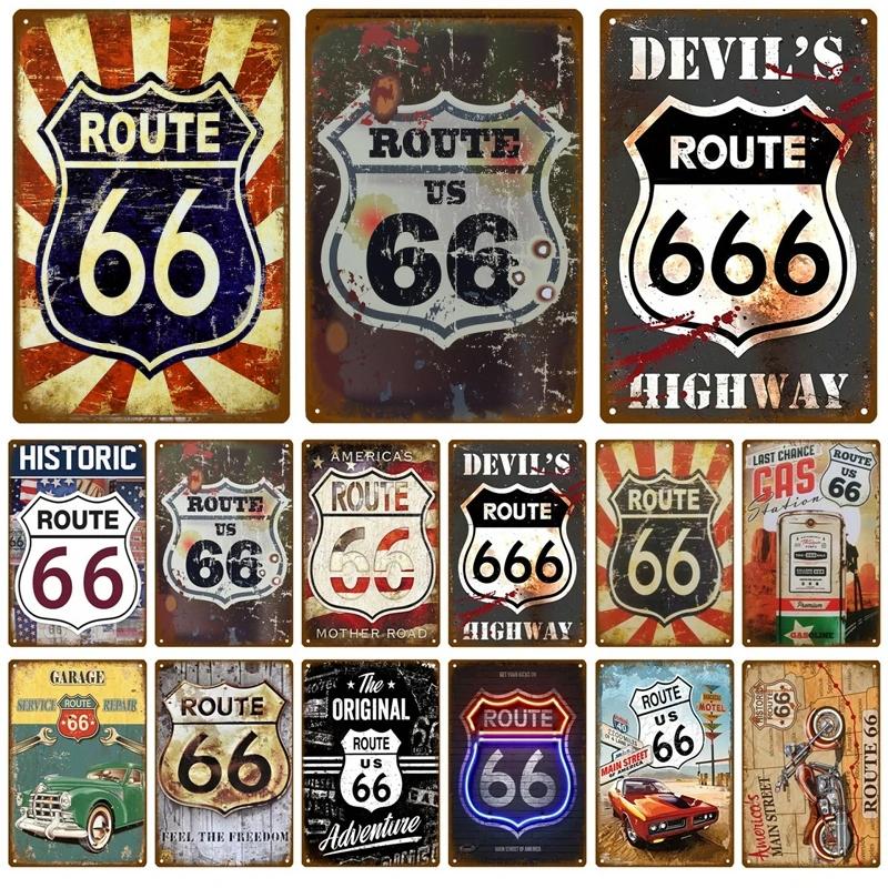 Vintage Route 66 Metal Sign House Plaque Metal Poster Tin Sign Plate Wall Posters Retro Aesthetic Room Decor Wall Art Decoration