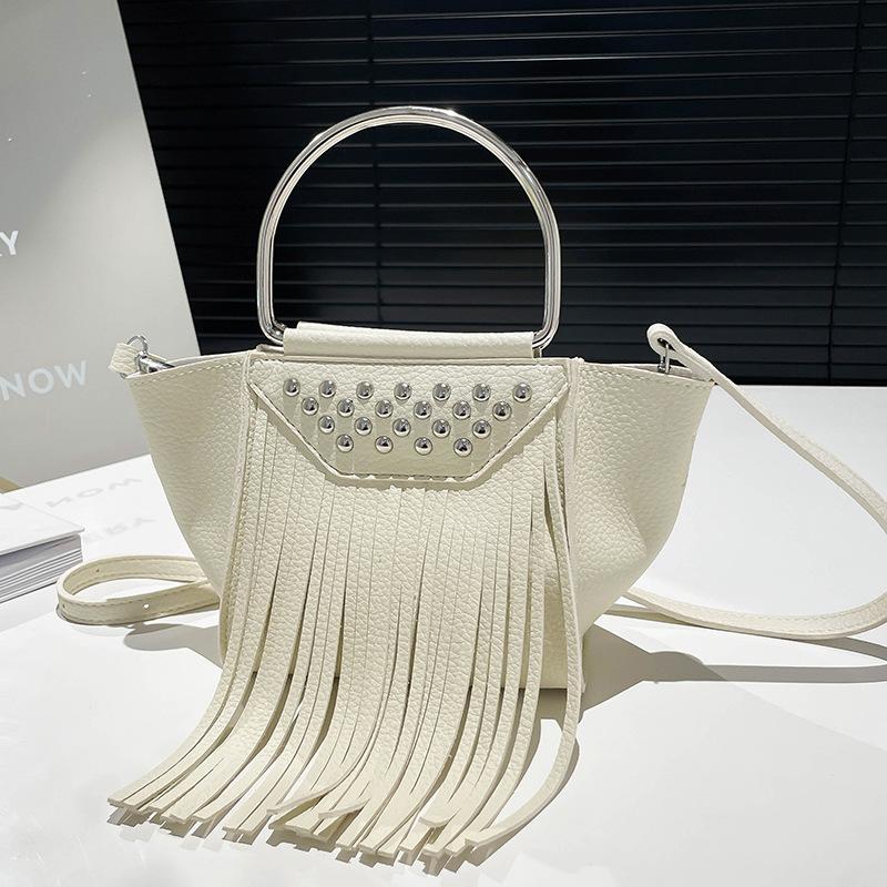 Trendy Niche Design Fringed Simple Portable Vegetable Basket Bag Personalized Rivet Versatile Spice Girl Wind Messenger Bag