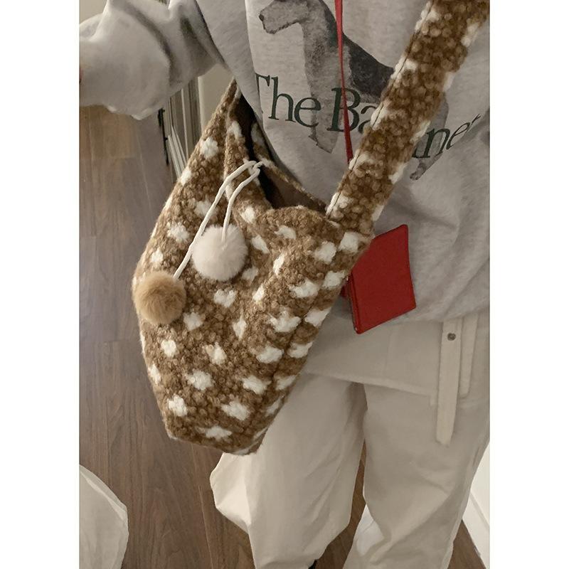 Winter New Lamb Plush Shoulder Bag 2025 New Retro Versatile Messenger Bag Niche Casual Bucket Bag