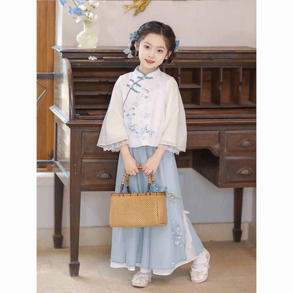 This enchanting outfit is perfect for little ones who dream of becoming fairy princesses. Crafted from lightweight chiffon, it's designed to provide comfort and elegance during the crisp days of spring and autumn. The long sleeves and traditional Chinese style of this hanfu make it a delightful choice for cultural events, special occasions, or imaginative play. Its delicate and flowing fabric adds a touch of magic, ensuring your child feels graceful and charming whenever she wears it.