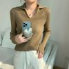 Collar Pit Strip Knitted Sweater Winter Sweater Slim Lo Lapel Bottom Top Women