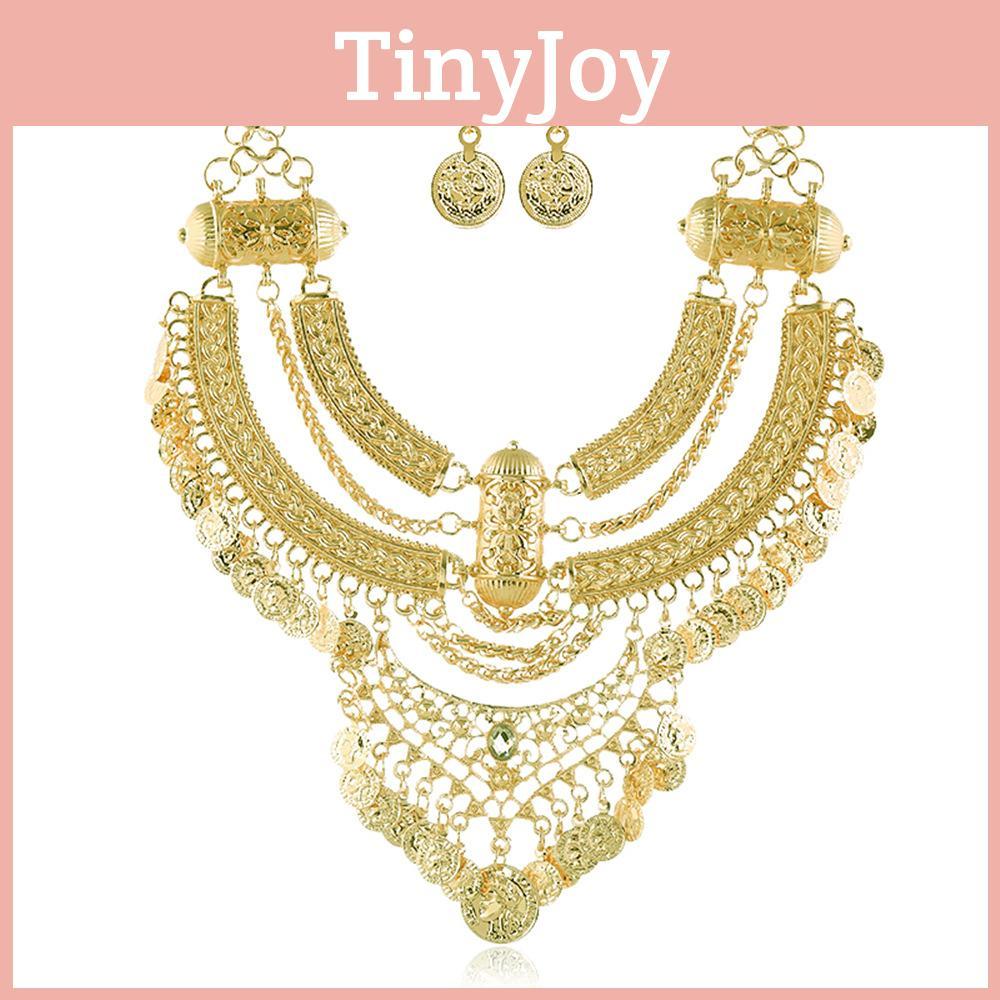 Coin Antique Finish Necklace Earrings With Bold Chain Women Elegant Accessories