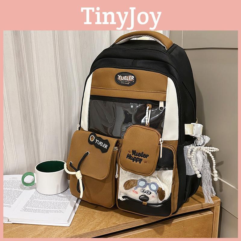 Blocked Color Sweet Letter Patter Student Backpack With Compartment Transparent