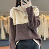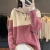 Experience unparalleled comfort and style with this high-end knitted half-open collar top, expertly crafted from premium wool and cashmere. This women's sweater features a sophisticated color block design and long sleeves, making it a chic addition to any wardrobe. The luxurious wool material ensures warmth and softness, providing an elegant yet cozy option for those cooler days. Perfect for both casual outings and more refined occasions, this sweater is a versatile staple that enhances any fashion ensemble.