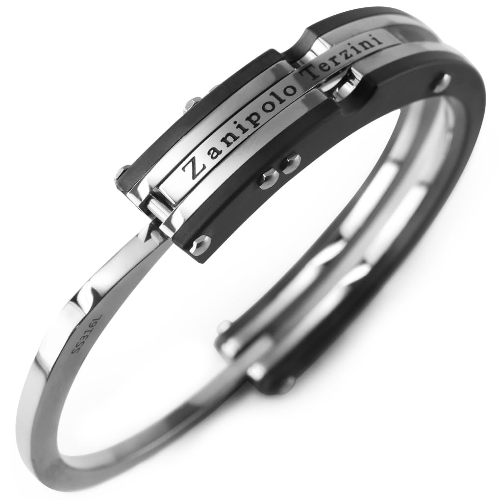 Zanipolo Tarzini Men's Handcuff Bracelet, Silver Color, Surgical Stainless Steel, Hypoallergenic, 316L Bangle