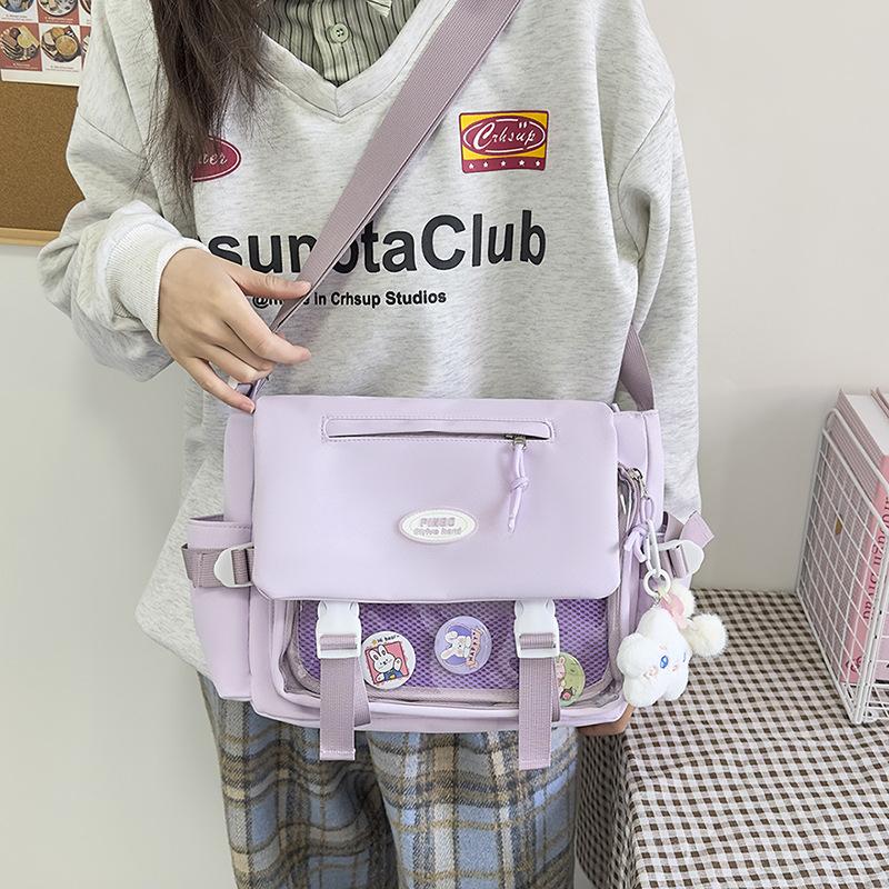Large-capacity School Bag, Mailman Bag, Women's Transparent and Versatile Simple Shoulder Messenger Bag, College Trend Pain Bag