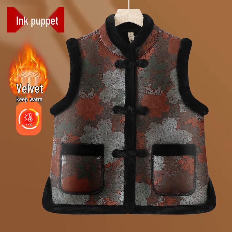 Elderly Women's Plus Velvet Chinese Style Warm Vest