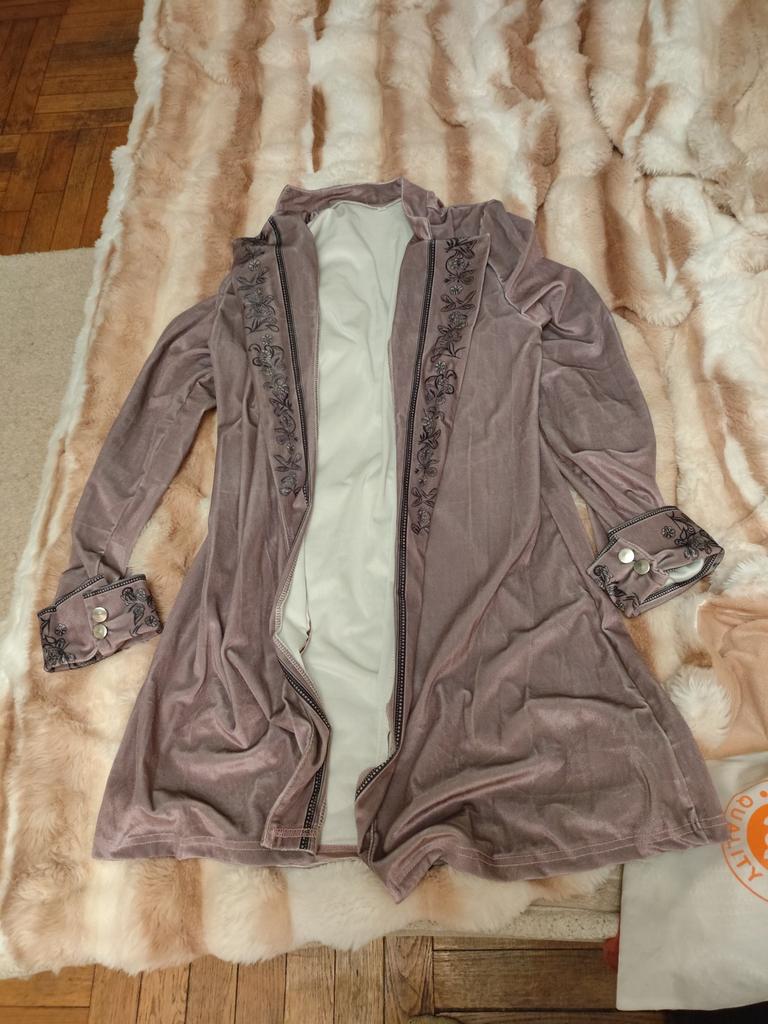 Women's Velvet Vintage Long-sleeved Cardigan With A Casual Opening And Mid-length Coat