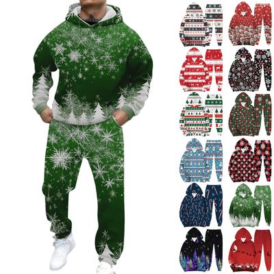 Men's Casual And Personalized Printed Long-sleeved Hooded Sweatshirt, Men's Sports Sweatshirt And Sweatpants Two-piece Set