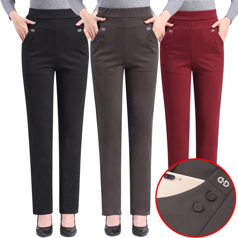Women's Fall/Winter Casual Pants Loose-Fit Stretch Trousers for Mature Women High-Waisted Elastic Waistband Leggings